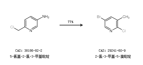 2.通过5-氨基-2-氯-3-甲基吡啶合成2-氯-3-甲基-5-溴吡啶,收率约77%;