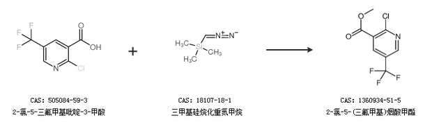 1.通过2-氯-5-三氟甲基吡啶-3-甲酸和三甲基硅烷化重氮甲烷合成2-氯-5-(三氟甲基)烟酸甲酯