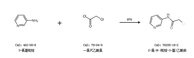 1.通过3-氨基吡啶和一氯代乙酰氯合成2-氯-N-(吡啶-3-基)乙酰胺,收率约97%;