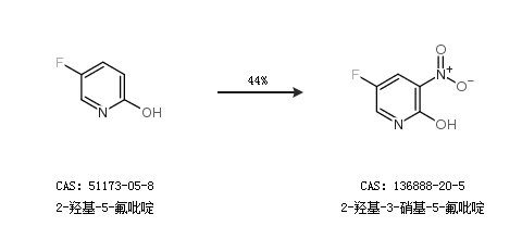 1.通过2-羟基-5-氟吡啶合成2-羟基-3-硝基-5-氟吡啶,收率约44%;