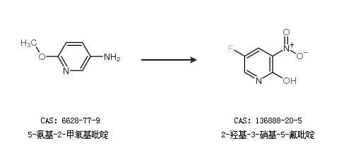 2.通过5-氨基-2-甲氧基吡啶合成2-羟基-3-硝基-5-氟吡啶