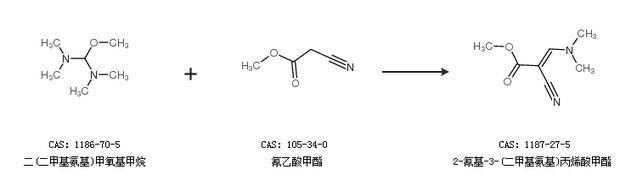 2.通过二(二甲基氨基)甲氧基甲烷和氰乙酸甲酯合成2-氰基-3-(二甲基氨基)丙烯酸甲酯