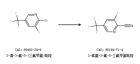 2.通过2-溴-3-氟-5-(三氟甲基)吡啶合成2-氰基-3-氟-5-三氟甲基吡啶