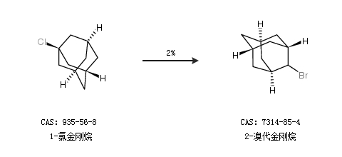 1.通过1-氯金刚烷合成2-溴代金刚烷,收率约2%;