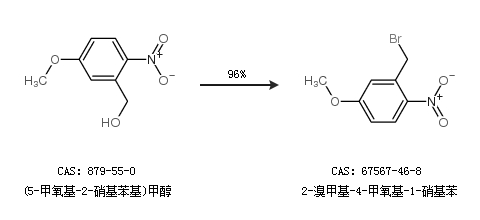 2.通过(5-甲氧基-2-硝基苯基)甲醇合成2-溴甲基-4-甲氧基-1-硝基苯,收率约96%;