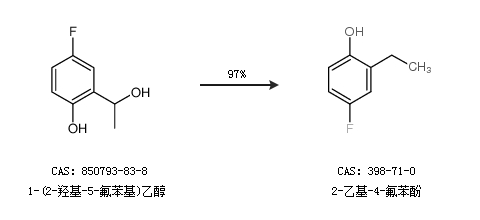 1.通过1-(2-羟基-5-氟苯基)乙醇合成2-乙基-4-氟苯酚,收率约97%;