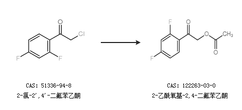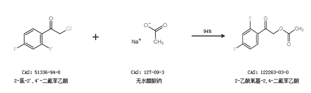 2.通过2-氯-2'',4''-二氟苯乙酮和无水醋酸钠合成2-乙酰氧基-2,4-二氟苯乙酮,收率约94%;