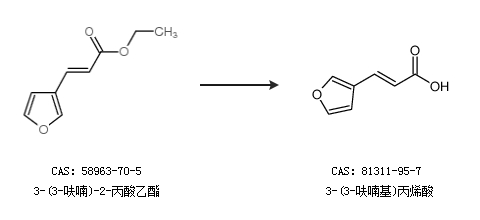 2.通过3-(3-呋喃)-2-丙酸乙酯合成3-(3-呋喃基)丙烯酸