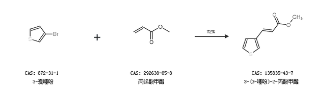 2.通过3-溴噻吩和丙烯酸甲酯合成3-(3-噻吩)-2-丙酸甲酯,收率约72%;
