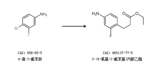 1.通过4-溴-3-氟苯胺合成3-(4-氨基-2-氟苯基)丙酸乙酯