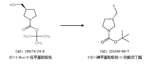 1.通过(S)-1-Boc-3-羟甲基吡咯烷合成3(S)-碘甲基吡咯烷-1-羧酸叔丁酯