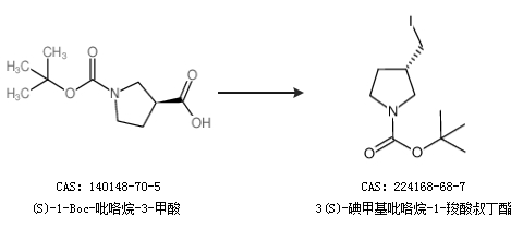 2.通过(S)-1-Boc-吡咯烷-3-甲酸合成3(S)-碘甲基吡咯烷-1-羧酸叔丁酯