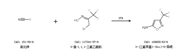 1.通过氰化钾和3-溴-1,1,1-三氟乙酮肟合成3-(三氟甲基)-(9ci)-5-异噁唑胺,收率约37%;