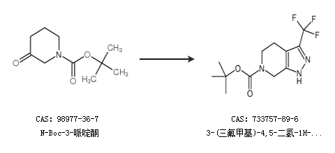 1.通过N-Boc-3-哌啶酮合成3-(三氟甲基)-4,5-二氢-1H-吡唑并[3,4-c]吡啶-6(7h)-羧酸叔丁酯