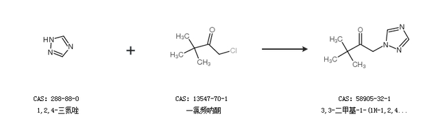 英文别名 2,2-dimethyl-4-(1,2,4-triazol-1-yl)-butan-3-one;1,2,4-Triazol-1-ylpinacolin;1-(1,2,4-triazol-1-yl)-3,3-dimethyl-butan-2-one;1-(1.2.4-Triazol-1-yl)-3.3-dimethylbutan-2-on;1-tert-butyl-2-(1H-1,2,4-triazol-1-yl)ethanone;1,2,4-TRIAZLOE-3,3-DIMETHYL-BUTANONE;3,3-Dimethyl-1-(1,2,4-triazol-1-yl)-2-butanon;3,3-DIMETHYL-1-(1H-1,2,4-TRIAZOLE-1-YL)-2-BUTANONE;3,3-dimethyl-1-(1,2,4-triazol-1-yl)-2-butanone;Einecs 261-489-6;
