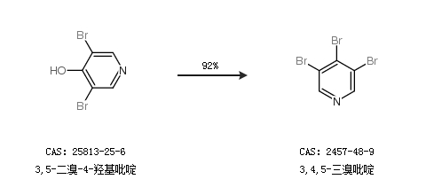 1.通过3,5-二溴-4-羟基吡啶合成3,4,5-三溴吡啶,收率约92%;