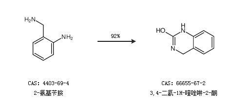 1.通过2-氨基苄胺合成3,4-二氢-1H-喹唑啉-2-酮,收率约92%;