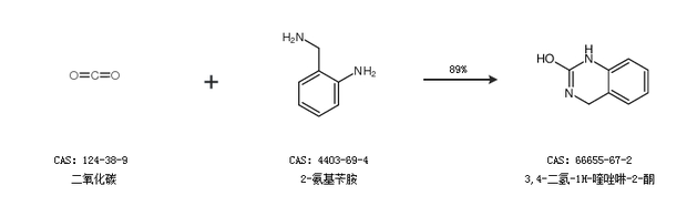 2.通过二氧化碳和2-氨基苄胺合成3,4-二氢-1H-喹唑啉-2-酮,收率约89%;