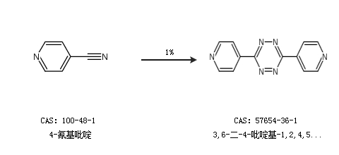 2.通过4-氰基吡啶合成3,6-二-4-吡啶基-1,2,4,5-四嗪,收率约1%;