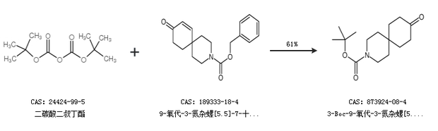 1.通过二碳酸二叔丁酯和9-氧代-3-氮杂螺[5.5]-7-十一烯-3-羧酸苄酯合成3-Boc-9-氧代-3-氮杂螺[5.5]十一烷,收率约61%;