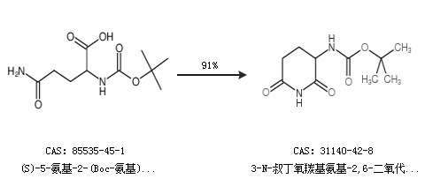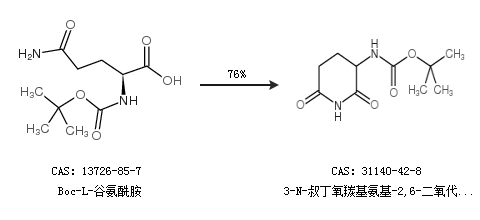 1.通过Boc-L-谷氨酰胺合成3-N-叔丁氧羰基氨基-2,6-二氧代哌啶,收率约76%;