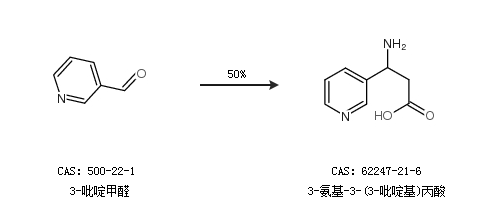 1.通过3-吡啶甲醛合成3-氨基-3-(3-吡啶基)丙酸,收率约50%;