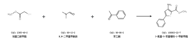 2.通过巯基乙酸甲酯、N,N-二甲基甲酰胺和苯乙酮合成3-氨基-5-苯基噻吩-2-甲酸甲酯