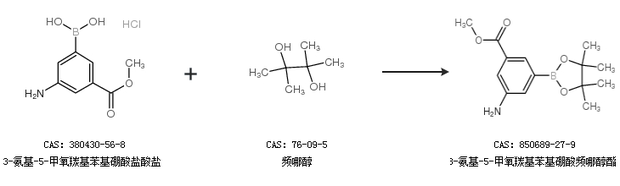 1.通过3-氨基-5-甲氧羰基苯基硼酸盐酸盐和频哪醇合成3-氨基-5-甲氧羰基苯基硼酸频哪醇酯