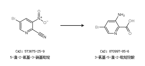 1.通过5-溴-2-氰基-3-硝基吡啶合成3-氨基-5-溴-2-吡啶羧酸