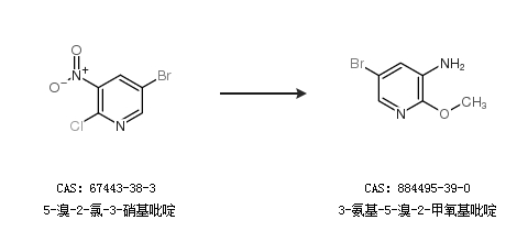 2.通过5-溴-2-氯-3-硝基吡啶合成3-氨基-5-溴-2-甲氧基吡啶