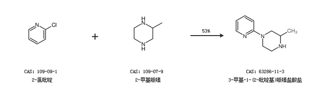 1.通过2-氯吡啶和2-甲基哌嗪合成3-甲基-1-(2-吡啶基)哌嗪盐酸盐,收率约53%;