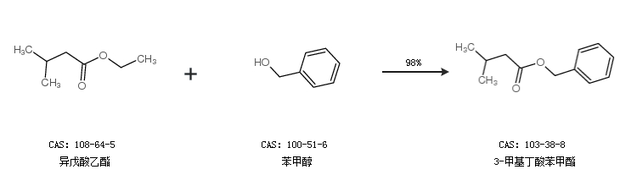 1.通过异戊酸乙酯和苯甲醇合成3-甲基丁酸苯甲酯,收率约98%;