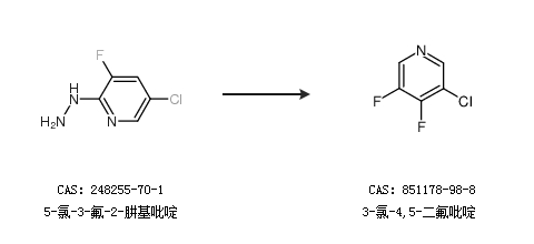 2.通过5-氯-3-氟-2-肼基吡啶合成3-氯-4,5-二氟吡啶