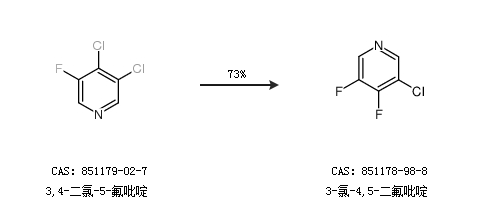 1.通过3,4-二氯-5-氟吡啶合成3-氯-4,5-二氟吡啶,收率约73%;