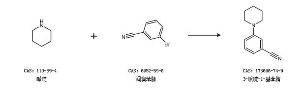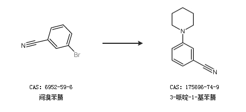 1.通过间溴苯腈合成3-哌啶-1-基苯腈