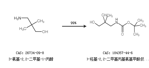 1.通过3-氨基-2,2-二甲基-1-丙醇合成3-羟基-2,2-二甲基丙基氨基甲酸叔丁酯,收率约99%;