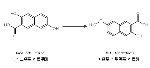 1.通过3,7-二羟基-2-萘甲酸合成3-羟基-7-甲氧基-2-萘酸