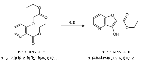 1.通过3-(2-乙氧基-2-氧代乙氧基)吡啶甲酸乙酯合成3-羟基呋喃并[3,2-b]吡啶-2-羧酸乙酯,收率约91%;