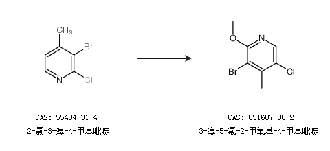 2.通过2-氯-3-溴-4-甲基吡啶合成3-溴-5-氯-2-甲氧基-4-甲基吡啶