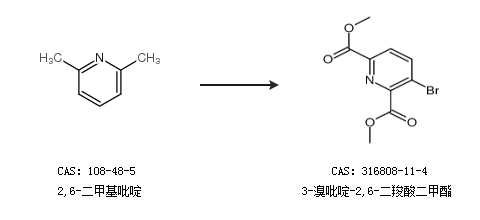 1.通过2,6-二甲基吡啶合成3-溴吡啶-2,6-二羧酸二甲酯