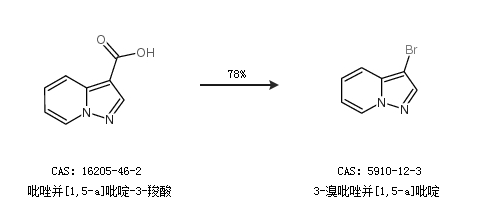 1.通过吡唑并[1,5-a]吡啶-3-羧酸合成3-溴吡唑并[1,5-a]吡啶,收率约78%;