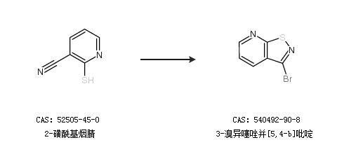 1.通过2-磺酰基烟腈合成3-溴异噻唑并[5,4-b]吡啶
