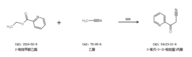 1.通过2-吡啶甲酸乙酯和乙腈合成3-氧代-3-(2-吡啶基)丙腈,收率约68%;