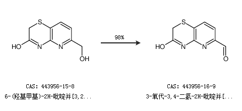 1.通过6-(羟基甲基)-2H-吡啶并[3,2-b][1,4]噻嗪-3(4h)-酮合成3-氧代-3,4-二氢-2H-吡啶并[3,2-b][1,4]噻嗪-6-甲醛,收率约98%;