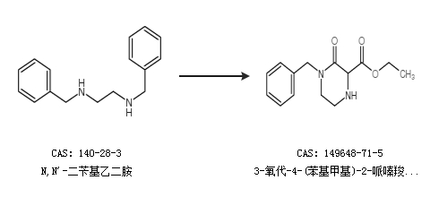 2.通过N,N''-二苄基乙二胺合成3-氧代-4-(苯基甲基)-2-哌嗪羧酸乙酯