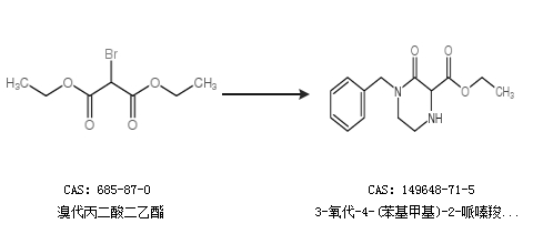 1.通过溴代丙二酸二乙酯合成3-氧代-4-(苯基甲基)-2-哌嗪羧酸乙酯