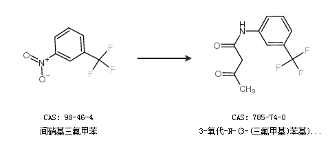 1.通过间硝基三氟甲苯合成3-氧代-N-(3-(三氟甲基)苯基)丁酰胺