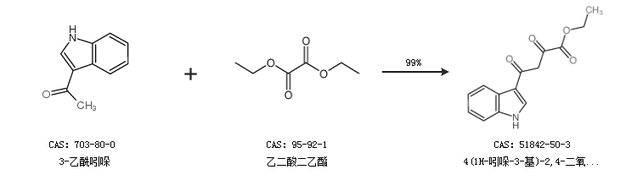 1.通过3-乙酰吲哚和乙二酸二乙酯合成4(1H-吲哚-3-基)-2,4-二氧代丁酸乙酯,收率约99%;