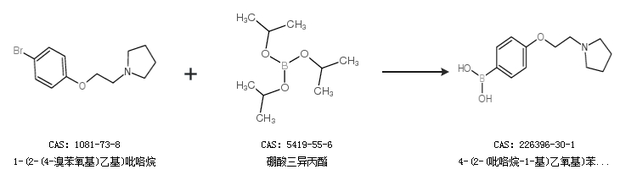 1.通过1-(2-(4-溴苯氧基)乙基)吡咯烷和硼酸三异丙酯合成4-(2-(吡咯烷-1-基)乙氧基)苯硼酸