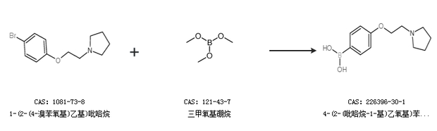2.通过1-(2-(4-溴苯氧基)乙基)吡咯烷和三甲氧基硼烷合成4-(2-(吡咯烷-1-基)乙氧基)苯硼酸